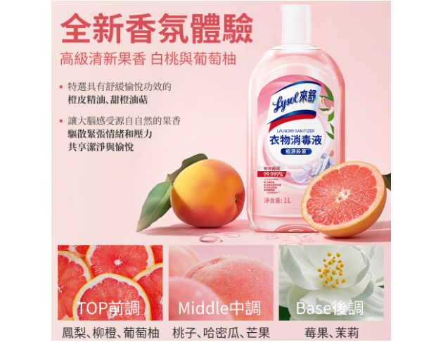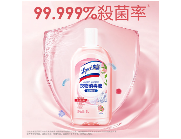 Lysol來舒衣物消毒液適用於任何標準洗衣機,能夠有效去衣物上的細菌,植物來源、配方溫和不刺激,可用於各種顏色的衣物,適合有衣物除菌需求的人。