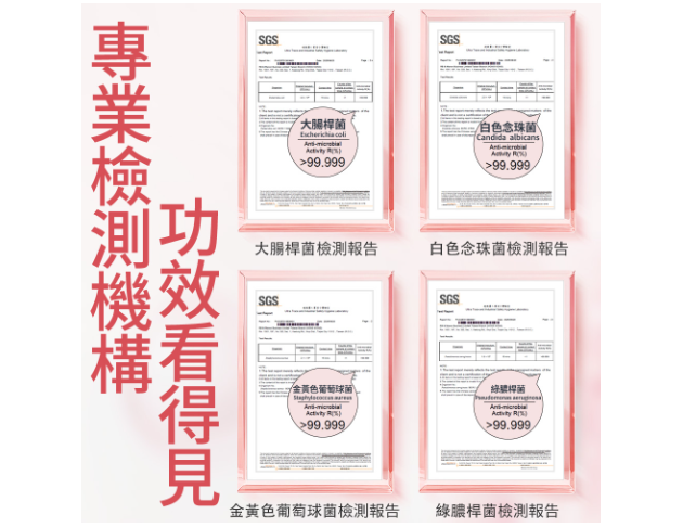 - 黃金葡萄球菌、大腸桿菌、白色念珠菌、綠膿桿菌。